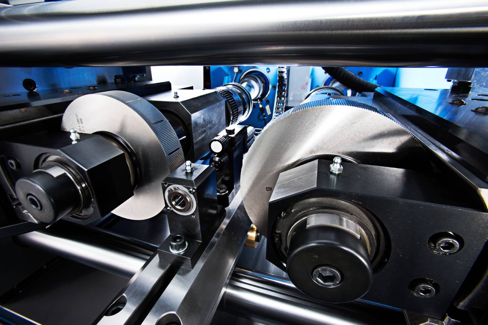 • Führungen des Walzschlittens mit wartungsfreien, verschleißarmen Gleitlagern. Somit entfällt eine Zentralschmierung