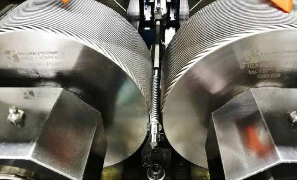 Unter Gewindewalzen oder Gewinderollen versteht man die spanlose Herstellung von rotationssymmetrischen Profilen an der Oberfläche entsprechender Werkstücke durch Kaltverformung. Dabei wird das Profil des Werkzeugs auf dem Rohteil abgebildet. Neben Gewinden aller Art werden auch Rändel, Kerbverzahnungen und ähnliche Profile gewalzt – hierfür werden die unterschiedlichsten Werkzeuge und Maschine von RWT zum Einsatz gebracht.
