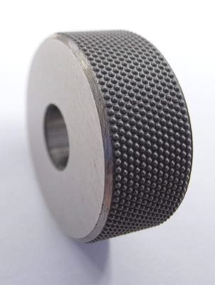Für die Bearbeitung von VA und hochfesten Stählen fertigen wir auch Rändelräder in HSS-Co. Ein Spezialnitrierverfahren steht zur Verfügung für hohe Standzeiten bei speziellen Einsätzen. Standardmäßig werden alle Rändelrollen mit einer 90° Fase geliefert. x